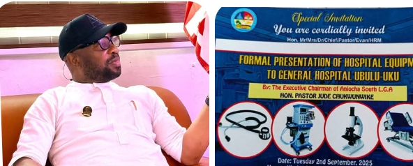 The Executive Chairman of Aniocha South Local Government Council, Hon. Pastor Jude Chukwunwike, will present hospital equipment to Ubulu-Uku General Hospital on Tuesday, September 2, 2025.