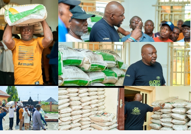 The distribution included 150 bags of 50kg rice donated by Delta State Governor, Rt. Hon. Elder Sheriff F. O. Oborevwori.