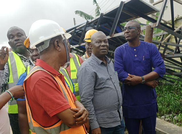 amongst others rolled up their sleeves to access the level of work being done to keep Ughelli free of flooding.
