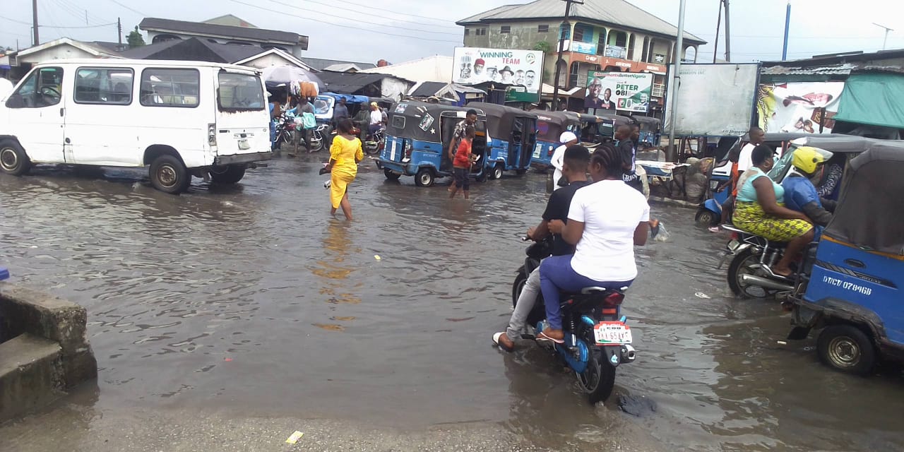 While Oviri Road down to 5 Junction in Agbarho in Ughelli North Local Government Area was submerged by flood.