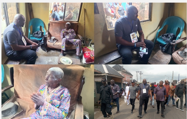 KPAKIAMA –The Executive Chairman of Bomadi Local Government Council, Hon. Dagidi Rawlings Andaye, on Friday visited the oldest man of Kpakiama Community, Pa David Gbelekema,