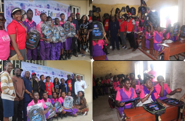 The Rotary Club of Warri Central ,Under Rotary International District 9141 has donated 150 brightly colored school bags to special indigent students at Dom Domingos College in Warri, Delta State.