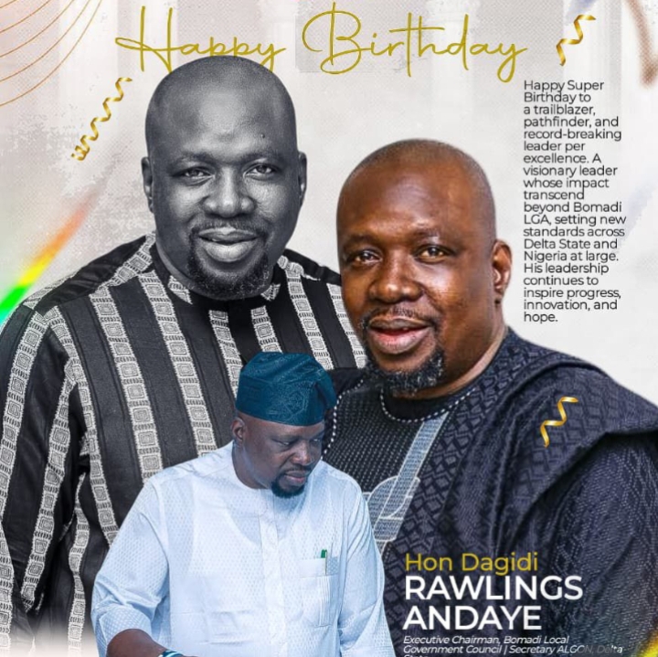 Bomadi, Delta State – Hon. Dagidi Rawlings Andaye, the Executive Chairman of Bomadi Local Government Council and Secretary of the Association of Local Governments of Nigeria (ALGON), marked his birthday Thursday, January 29th, 2026.
